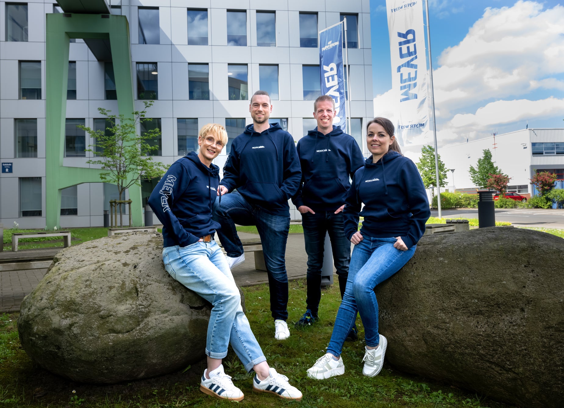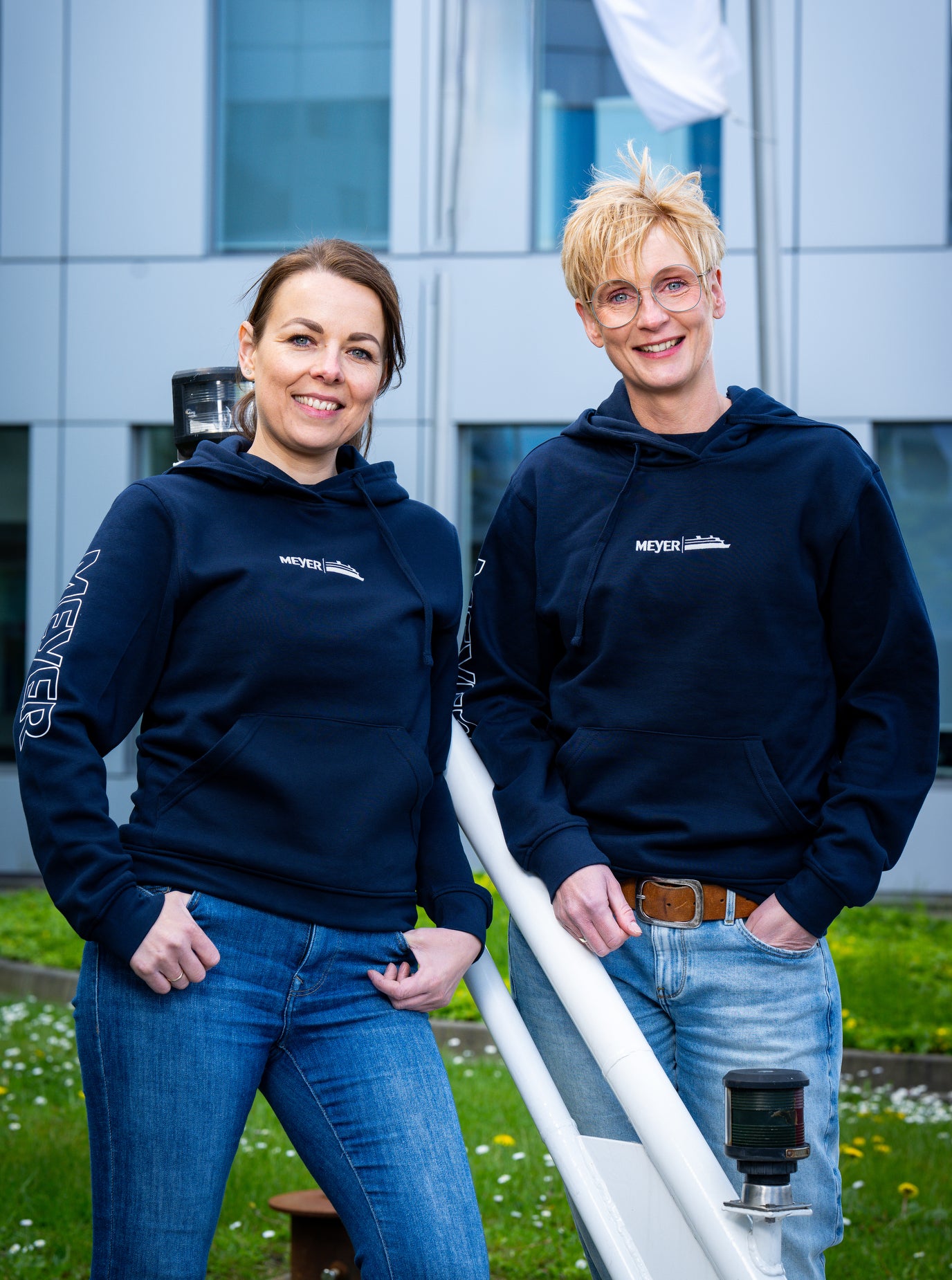 Vorne dezent, hinten mit Spruch: Auf der Brust unser weißer Logo-Stick – schlicht und stilvoll. Der Rücken trägt selbstbewusst unseren Spruch „Schipp mutt kloar“ ein Statement, den alle bei MEYER kennen.