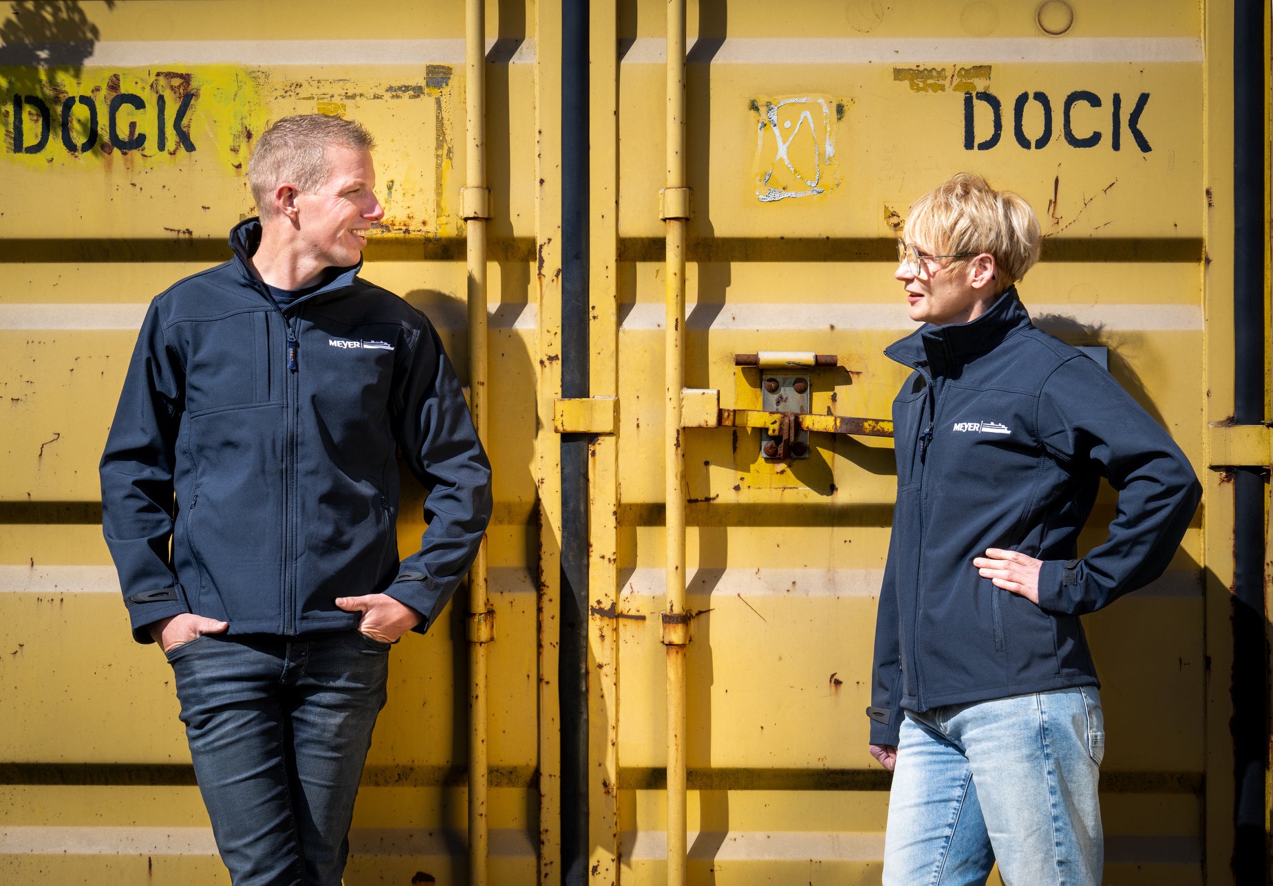 Auf der Brust unser Firmenlogo – auf dem Rücken zeigt der große Schriftzug deutlich, wozu du gehörst.
